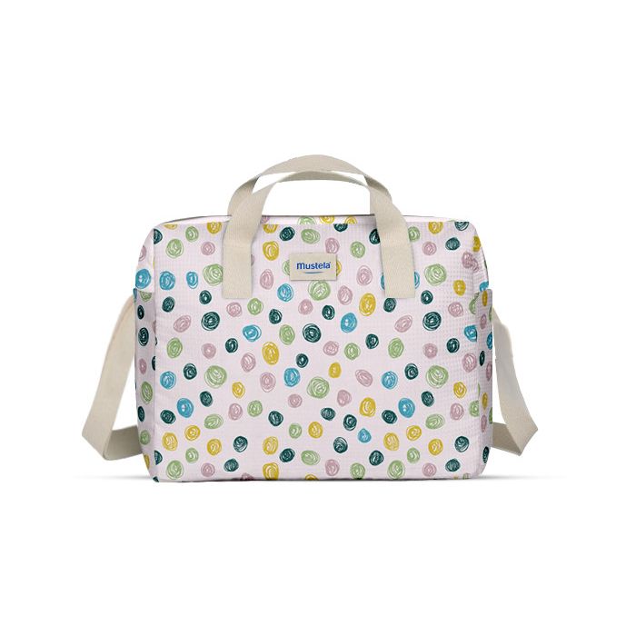 Sac pour poussette 100% coton avec 4 produits essentiels pour les soins de bébé Mustela.