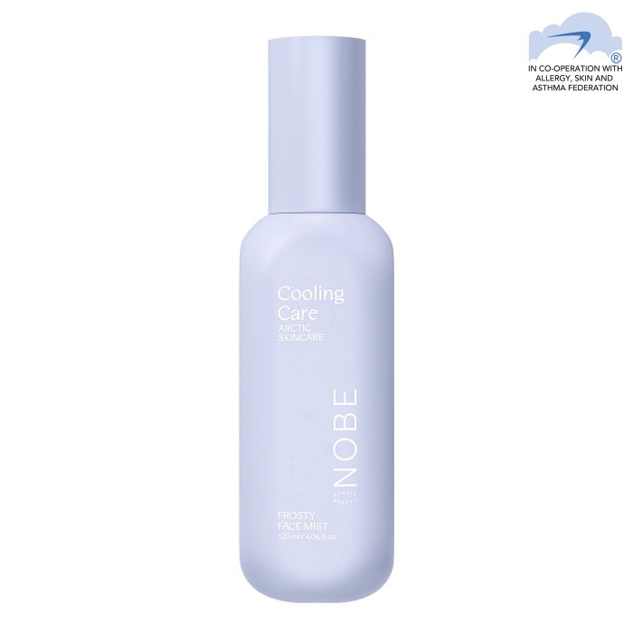 La Cooling Care Frosty Face Mist de NOBE est une brume visage rafraîchissante et hydratante faisant partie de la gamme Cooling Care, un hommage à la natation en eau glacée et au proverbe finlandais "le froid rend belle". Infusée d’un mélange de Xylitol® recyclé de Fazer, d’aloe vera et de menthe, elle hydrate, apaise et renforce la barrière cutanée.