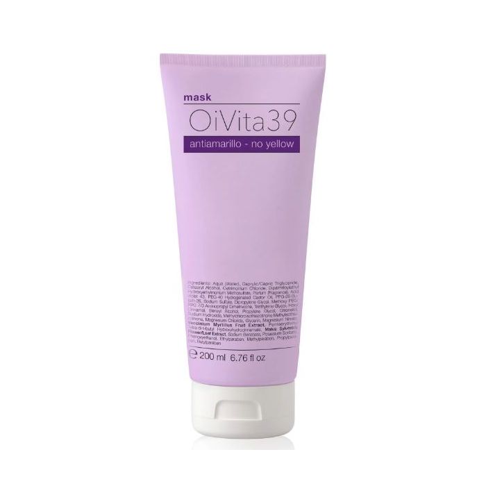 Masque anti-jaunissement pour cheveux gris, blonds et décolorés. Apporte douceur et soyeux tout en neutralisant les reflets jaunes indésirables.
