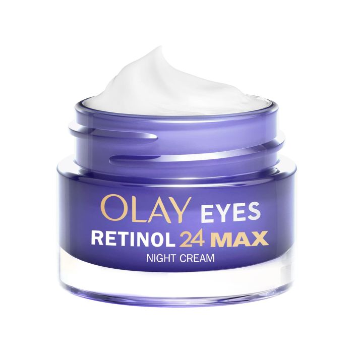 La crème de nuit pour le contour des yeux Olay Regenerist Retinol 24 MAX hydrate, lisse et ravive l'éclat des yeux pour afficher un regard plus jeune et radieux.