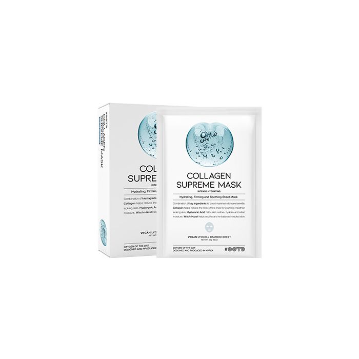 Revitalisez votre peau avec le masque visage régénérant Collagen Supreme Mask de OOTD Beauty, formulé avec une puissante combinaison de collagène, d’acide hyaluronique et d’hamamélis pour un soin complet.