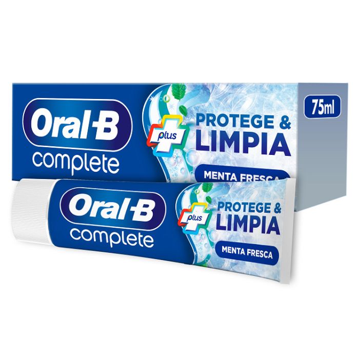 Le dentifrice Oral-B Complete Plus avec bain de bouche offre un brossage frais et une sensation de propreté plus confortable et durable.