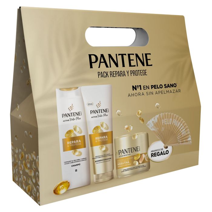 Le Pack Summer Répare et Protège de PANTENE comprend le Shampoing Pantene Répare & Protège avec la technologie Pro-V, l’Après-shampoing Pantene Répare & Protège ainsi qu’un masque capillaire protecteur à la kératine. Cet ensemble signé PANTENE aide à réparer et à protéger les cheveux tout en préservant leur santé face aux agressions extérieures. Un éventail "Cheveux Pantene" est également inclus en cadeau.