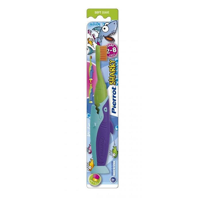 La brosse à dents Sharky de Pierrot est conçue pour les enfants de 3 à 8 ans et est disponible en plusieurs coloris pour rendre l’hygiène dentaire plus attrayante.