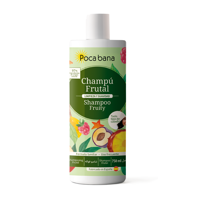 Le Shampoing Fruité de Poca Bana nettoie délicatement les cheveux, les laissant doux, brillants et avec un parfum irrésistible de fruits. Sa formule avec extraits naturels de fruits tels que la framboise, la pomme, la papaye et le kiwi revitalise le cuir chevelu et apporte fraîcheur et vitalité dès la première utilisation.