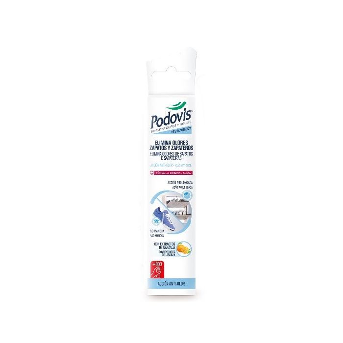 Le Désodorisant pour Chaussures de Podovis est un spray qui élimine les mauvaises odeurs de tout type de chaussure ou de meuble à chaussures, et prévient leur réapparition, sans tacher les tissus ni les surfaces.