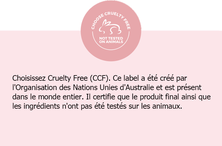 Cela signifie qu'il est exempt de cruauté envers les animaux. Les produits cruelty free n'ont pas été testés ni expérimentés sur des animaux, ce qui n'a causé ni souffrance ni mort à ces derniers. Pour qu'un produit soit considéré comme cruelty free, ni ses ingrédients ni sa formule finale ne doivent avoir été testés sur des animaux à aucun moment du processus.