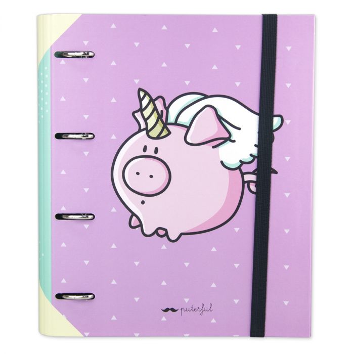 Le Classeur à Anneaux Cerdicornio de Puterful est un classeur en carton amusant pour ranger vos documents ou affaires scolaires. Il dispose de 4 anneaux et d’un élastique pour une fermeture parfaite.