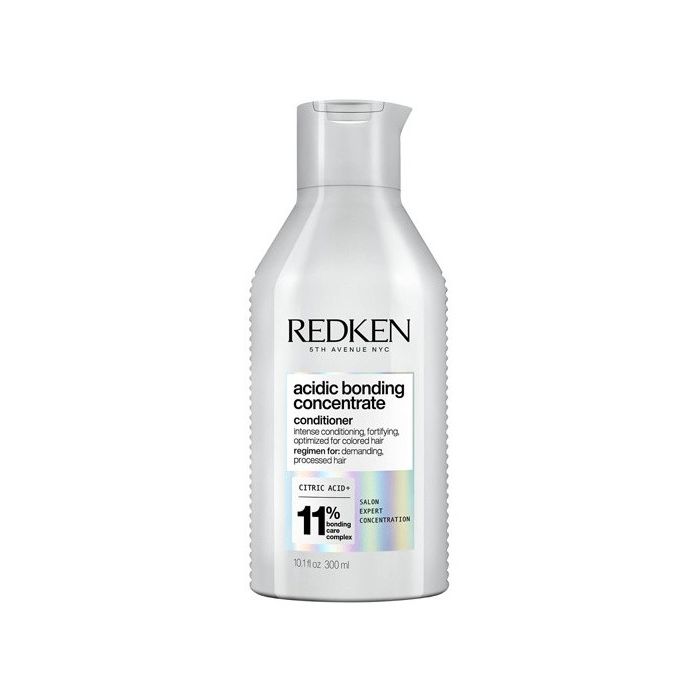 Redken Acidic Bonding Concentrate Après-Shampooing, enrichi en acide citrique, intègre un complexe concentré de soin des liaisons qui renforce les cheveux fragilisés.