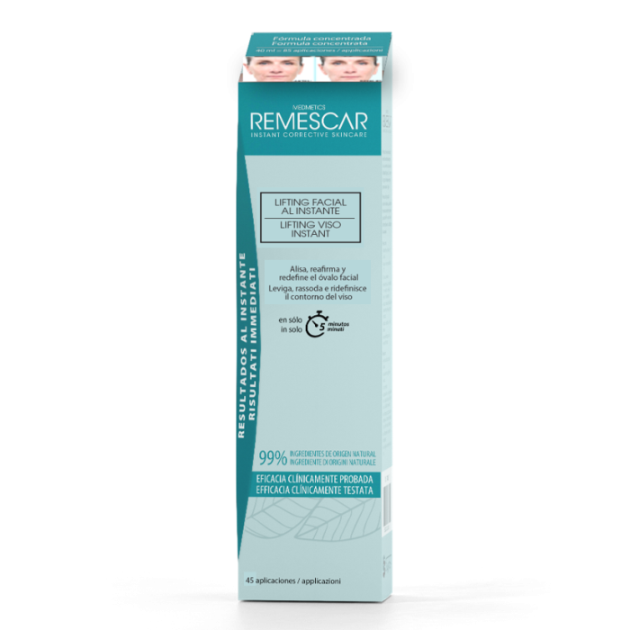 Remescar Lifting Visage Instantané est spécialement formulé pour lisser, raffermir et redéfinir instantanément l’ovale du visage. Sa formule concentrée et efficace à base de tenseur naturel