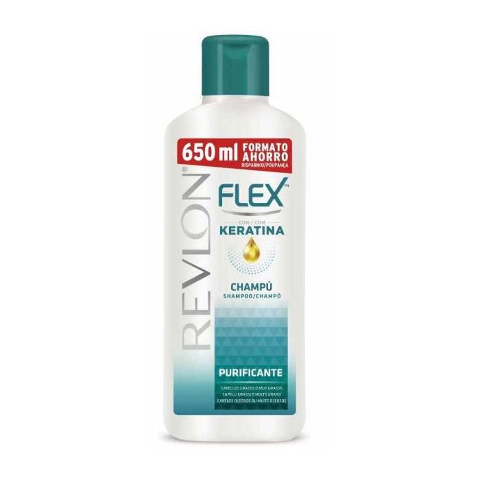 Shampoing pour Cheveux Gras Flex de Revlon : Contient de la kératine et des agents nettoyants spécialisés pour lutter contre la graisse et réguler sa production. Les cheveux seront progressivement purifiés et revitalisés.