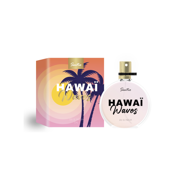 Hawai capture le doux soleil d'été, avec des notes d'agrumes. Évoque les saveurs d'une piña colada glacée et des promenades sur la plage, vous transportant vers une journée parfaite de détente sous la lumière dorée de l'île.