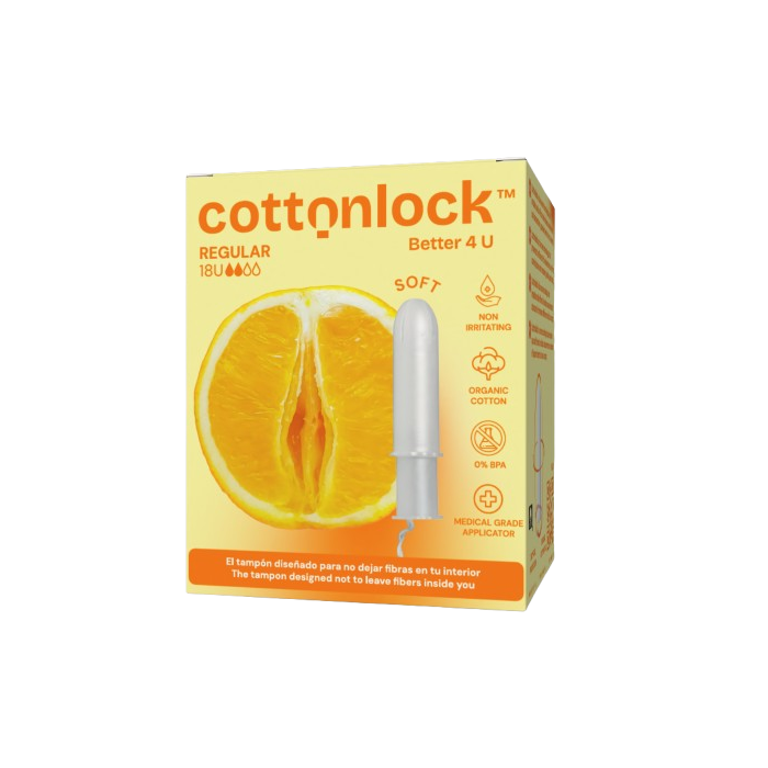 Les tampons Cottonlock sont conçus pour ne pas laisser de fibres à l’intérieur du corps grâce à leur voile de sécurité exclusif à 360°, qui enveloppe entièrement le cœur absorbant et empêche les fibres de coton de rester fixées aux parois vaginales.