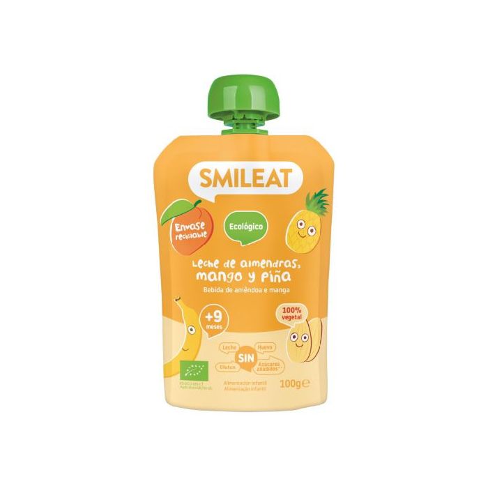 Le Pouch Amande, Mangue et Ananas d’Eco Smileat est une purée à base de pomme, disponible en plusieurs saveurs. Une recette biologique riche en amande, mangue et ananas, présentée dans un emballage monomatériau et durable. Ces pouchs sont des goûters à boire sans additifs, sans sel, sans sucres ajoutés, sans traces de lait de vache, sans allergènes, sans produits chimiques, sans gluten et sans œufs. Leur emballage est spécialement conçu pour l’alimentation des tout-petits.