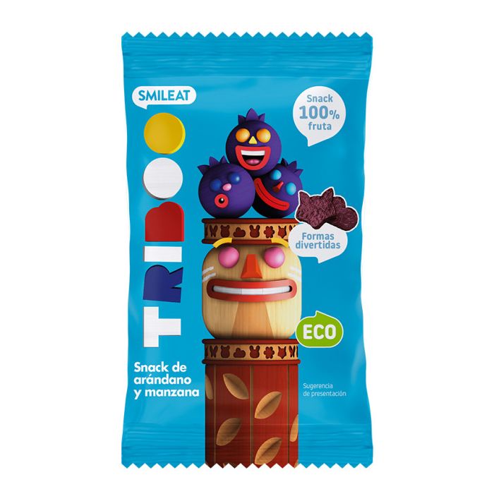 Le Snack biologique aux myrtilles Triboo de Smileat est un en-cas écologique à base de myrtilles.