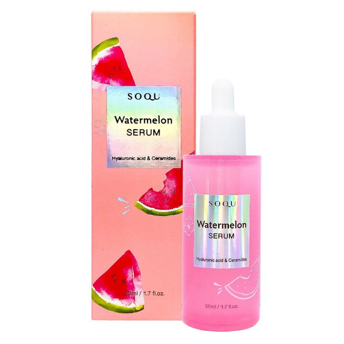 Hydratez votre peau pendant la nuit avec le sérum à la pastèque de SOQU. L’extrait de pastèque procure une sensation de fraîcheur et de douceur immédiate.