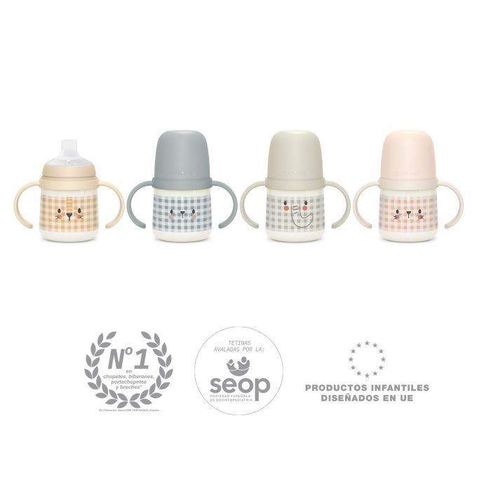 Le biberon d’apprentissage SUAVINEX avec poignées offre une prise en main facile et un maniement confortable pour le bébé.