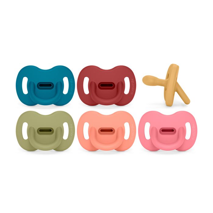 Sucette tout silicone avec tétine physiologique SX Pro, disponible pour les bébés de 0 à 6 mois et de 6 à 18 mois. Aussi proche que possible de la sensation de ne pas porter de sucette. Conçue pour respecter le développement bucco-dentaire du bébé.