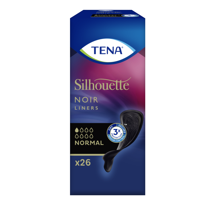 Le Silhouette de Tena Silhouette Normal Noir est spécialement conçu pour être utilisé avec des sous-vêtements foncés afin d'offrir une grande discrétion aux femmes ayant de légères fuites urinaires. Le Protège-Slip Tena Silhouette Normal Noir offre une triple protection contre les fuites, les odeurs et la sensation d'humidité, isolant profondément les gouttes et les petites fuites d'urine dans le noyau absorbant.