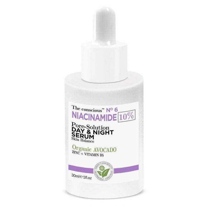 The conscious sérum de jour et de nuit aide à équilibrer la peau grâce à la niacinamide, au zinc et à l’huile d’avocat bio, réduisant l’apparence des imperfections et des pores pour un teint propre, frais et purifié.