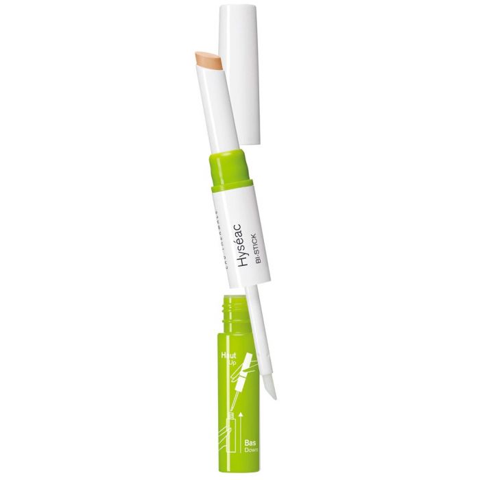Hyséac Bi-Stick Imperfections est un soin à double action, simple et rapide à appliquer, qui combine deux gestes complémentaires :