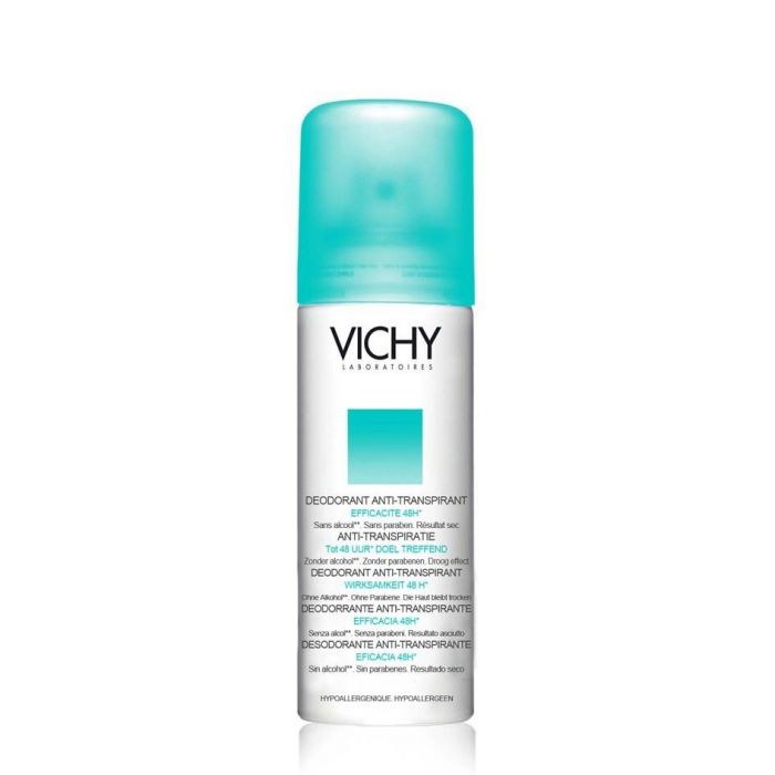 VICHY DÉODORANT ANTI-TRANSPIRANT 48h AÉROSOL TRANSPIRATION INTENSE : Déodorant anti-transpirant 48h en format aérosol. Conçu pour les hommes et les femmes souffrant de transpiration intense et recherchant une efficacité maximale sans agresser la peau.