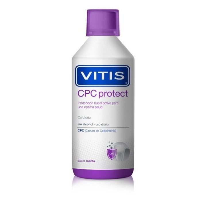 Vitis CPC Protect est un bain de bouche qui aide à réduire la plaque dentaire (biofilm), offrant une protection bucco-dentaire active grâce à sa haute concentration en chlorure de cétylpyridinium (CPC).