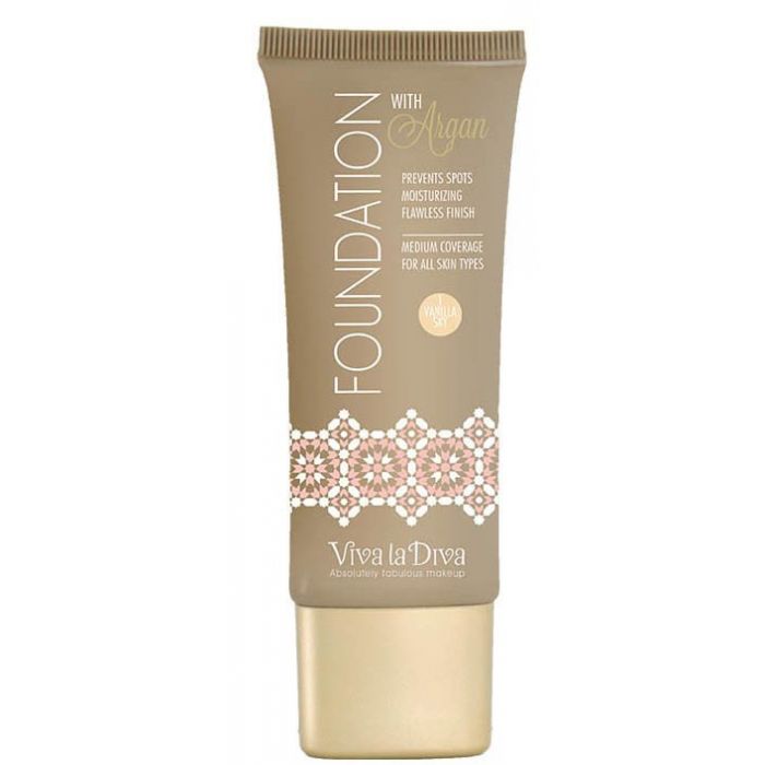 VIVA LA DIVA Fond de teint à l’huile d’argan convient à tous les types de peau. Sa formule contient de l’huile d’argan aux propriétés hydratantes et nourrissantes, idéale pour unifier le teint et atténuer les taches.