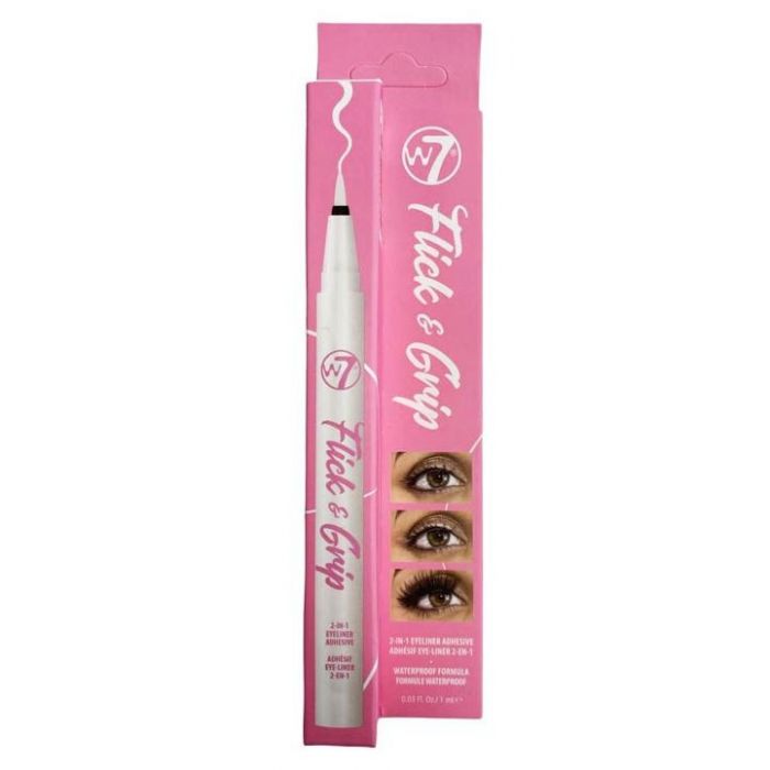 Le Flick & Grip Eyeliner 2EN1 de W7 agit à la fois comme un adhésif pour cils et comme un eyeliner liquide, offrant un fini longue durée.