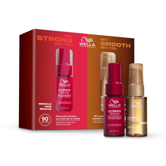 Coffret Wella Professionals Ultimate Repair & Ultimate Smooth : vos essentiels pour des cheveux réparés et sans frisottis.