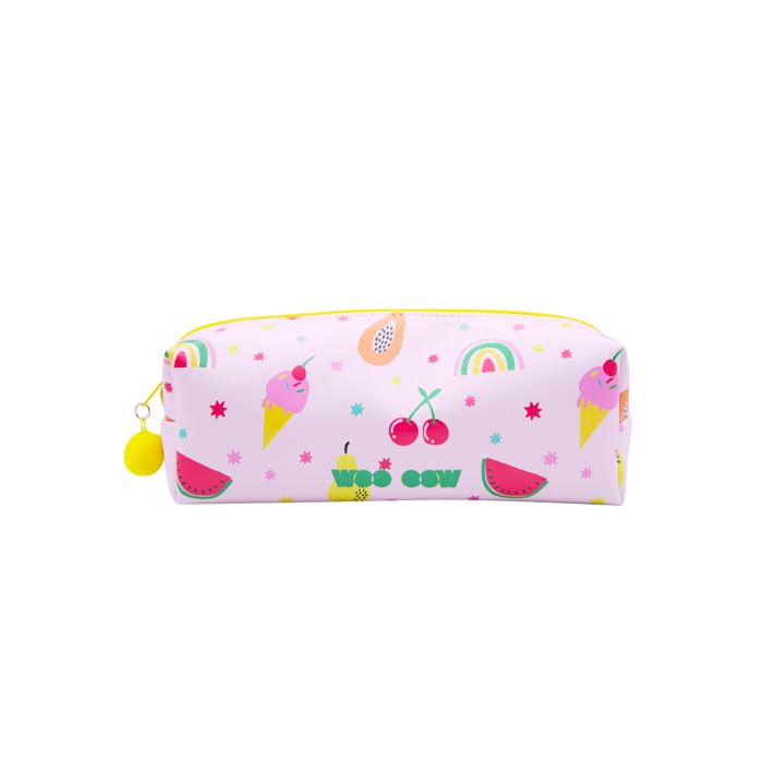 Des accessoires qui brillent ! Cette trousse aux motifs fruités, pleine de couleurs et ornée d'un pompon sur la fermeture éclair, brille de mille feux. C'est l'accessoire idéal pour transporter votre matériel scolaire, maquillage, accessoires… tout ce que vous souhaitez.