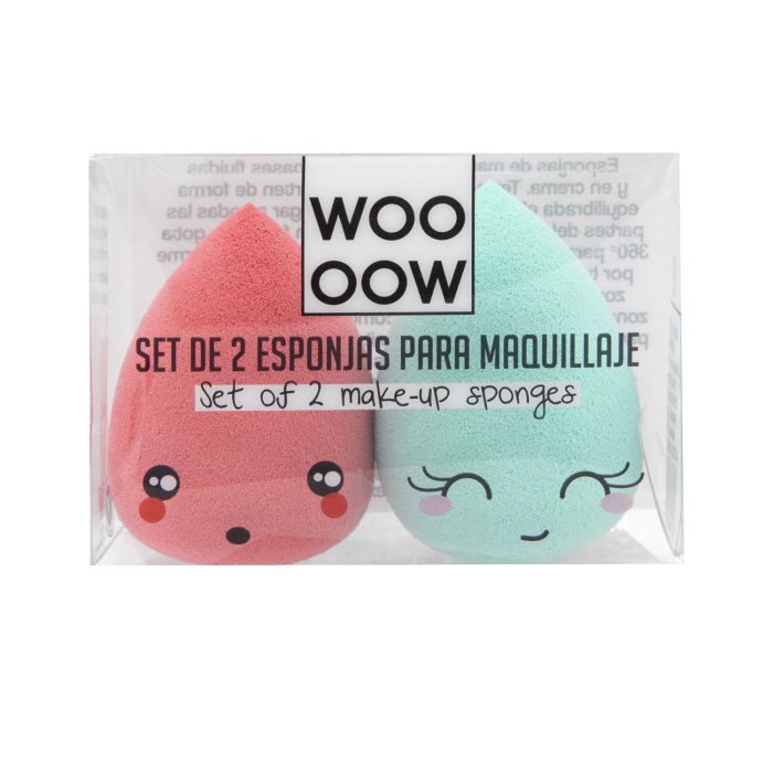 Woo Oow Set de 2 éponges idéal pour appliquer des fonds de teint fluides et en crème. Texture ultra-douce. Elles répartissent le maquillage de manière homogène, atteignant toutes les zones du visage.