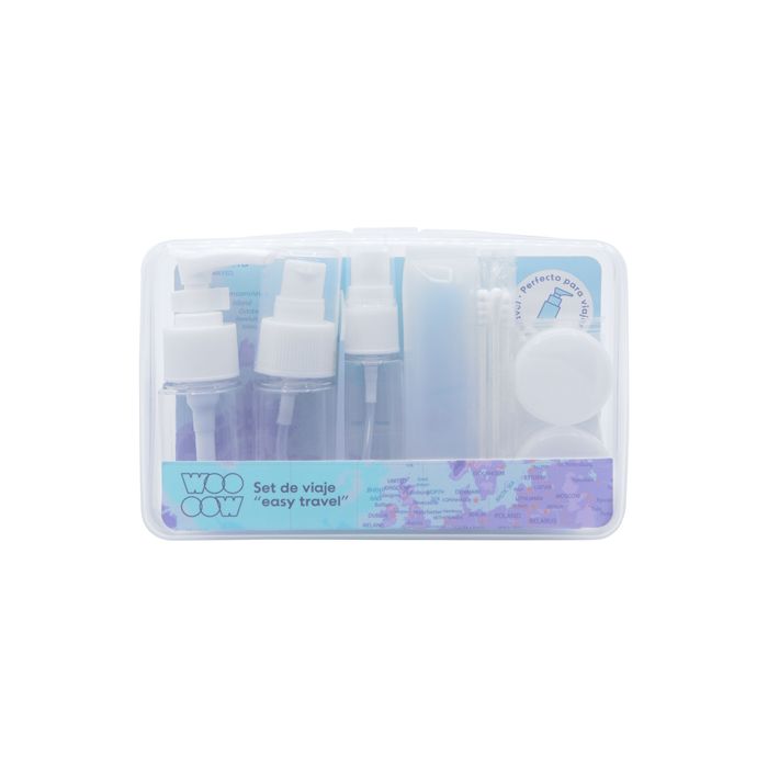La meilleure façon de voyager avec vos produits préférés! Set de flacons transparents rechargeables, parfaits pour être transportés dans votre bagage à main.