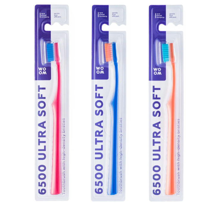 La brosse à dents 6500 Ultra Douce est dotée d'une densité de poils élevée pour une élimination optimale de la plaque dentaire. Le diamètre des poils de 0,1 mm garantit un nettoyage doux et efficace, une stimulation douce des gencives et une protection contre les lésions de l'émail. Le manche hexagonal ergonomique assure une prise en main confortable et ferme de la brosse pendant le nettoyage.