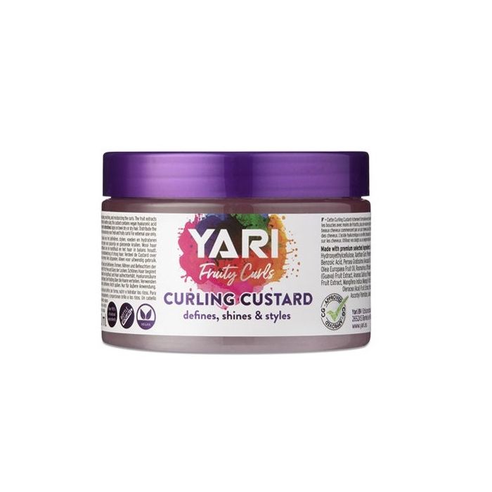 Fruity Curls Curling Custard, idéal pour définir, donner forme, nourrir et hydrater vos boucles. Cette crème est enrichie en acide hyaluronique et extraits de fruits.