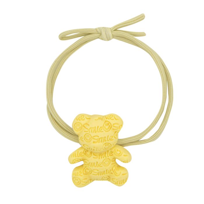 Élastique double jaune orné d’un ourson smiley en acrylique. L’accessoire idéal pour sublimer les coiffures de vos petites princesses.