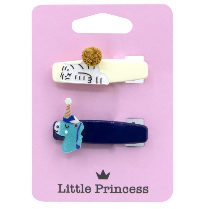 You Are The Princess Set de 2 Barrettes Licorne Bleue et Tigre Blanc Little Princess