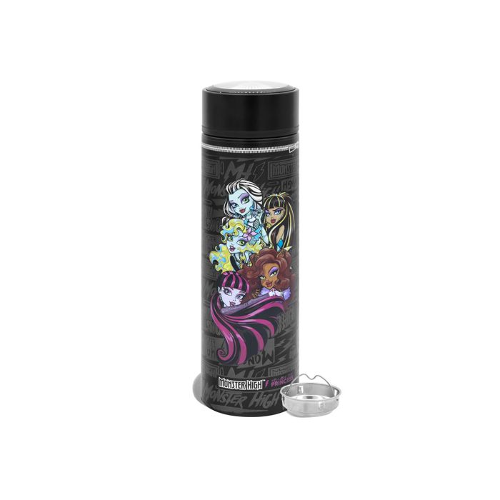 Emporte ce thermos Monster High avec toi à tout moment et garde tes boissons chaudes ou froides plus longtemps. Il comprend également un filtre pour transporter vos infusions les plus monstrueuses. Résistant aux chocs et à la casse. Joint en silicone pour la sécurité avec système anti-fuite. Convient aux boissons jusqu'à 50º. Il n'est pas recommandé de le remplir avec des jus de fruits ou des boissons gazeuses pendant une longue période. Conserve la température de vos boissons jusqu'à 6 heures. Matériau intérieur/extérieur: acier inoxydable 304 à l'intérieur/201 à l'extérieur. Ne passe pas au micro-ondes ni au lave-vaisselle. Laver à la main. Sans BPA.